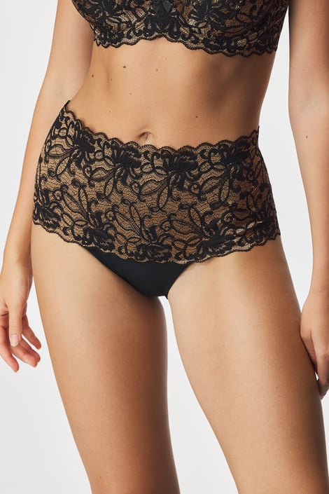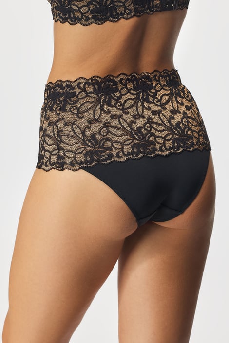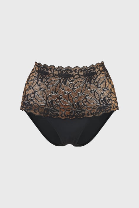 Elegantní kalhotky s vyšším pasem s luxusní zlatočernou krajkou v hlavní roli. Užijte si pocit výjimečnosti.