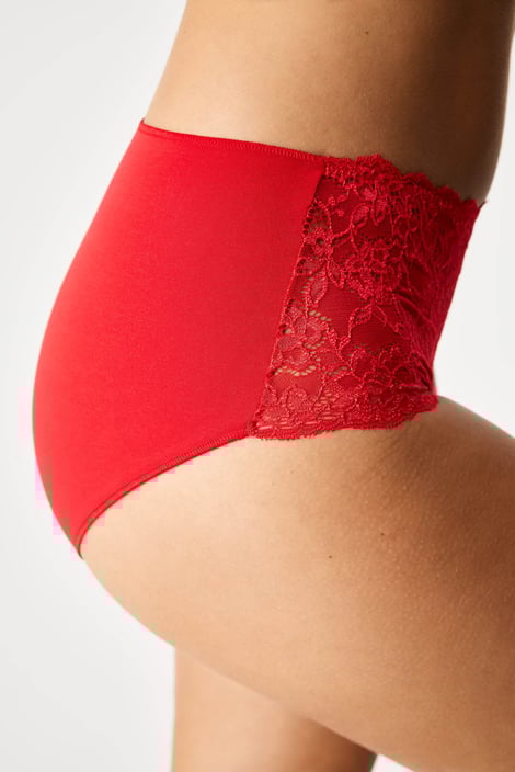 Klasické kalhotky Lacey s komfortně vysokým pasem nejen pro plné tvary. Na přední straně vyniká jemně vyšívaná krajka s květinovým motivem.