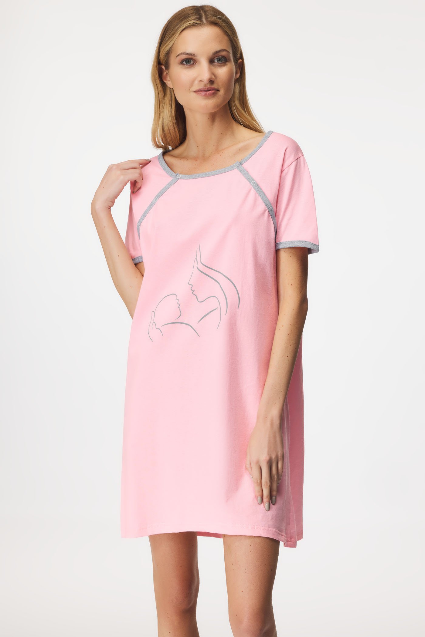 Kojicí noční košile Malia z čistě bavlněného úpletu se skrytými zipy v oblasti prsou. Jednoduché rozepínání vám umožní pohodlně nakojit své děťátko.
