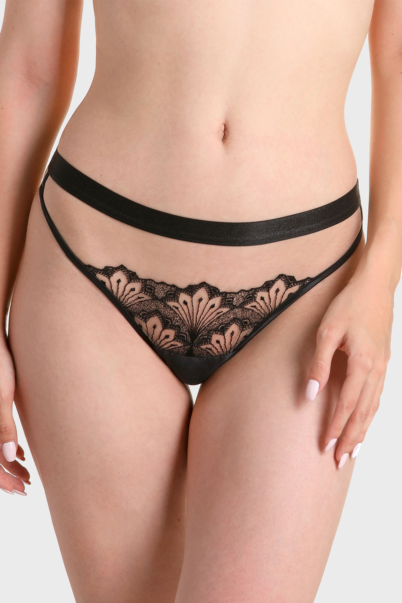 Luxusní kalhotky Desire pro běžné nošení i chvíle svádění. Tělový tyl zdobí v oblasti klínu bohatá výšivka.