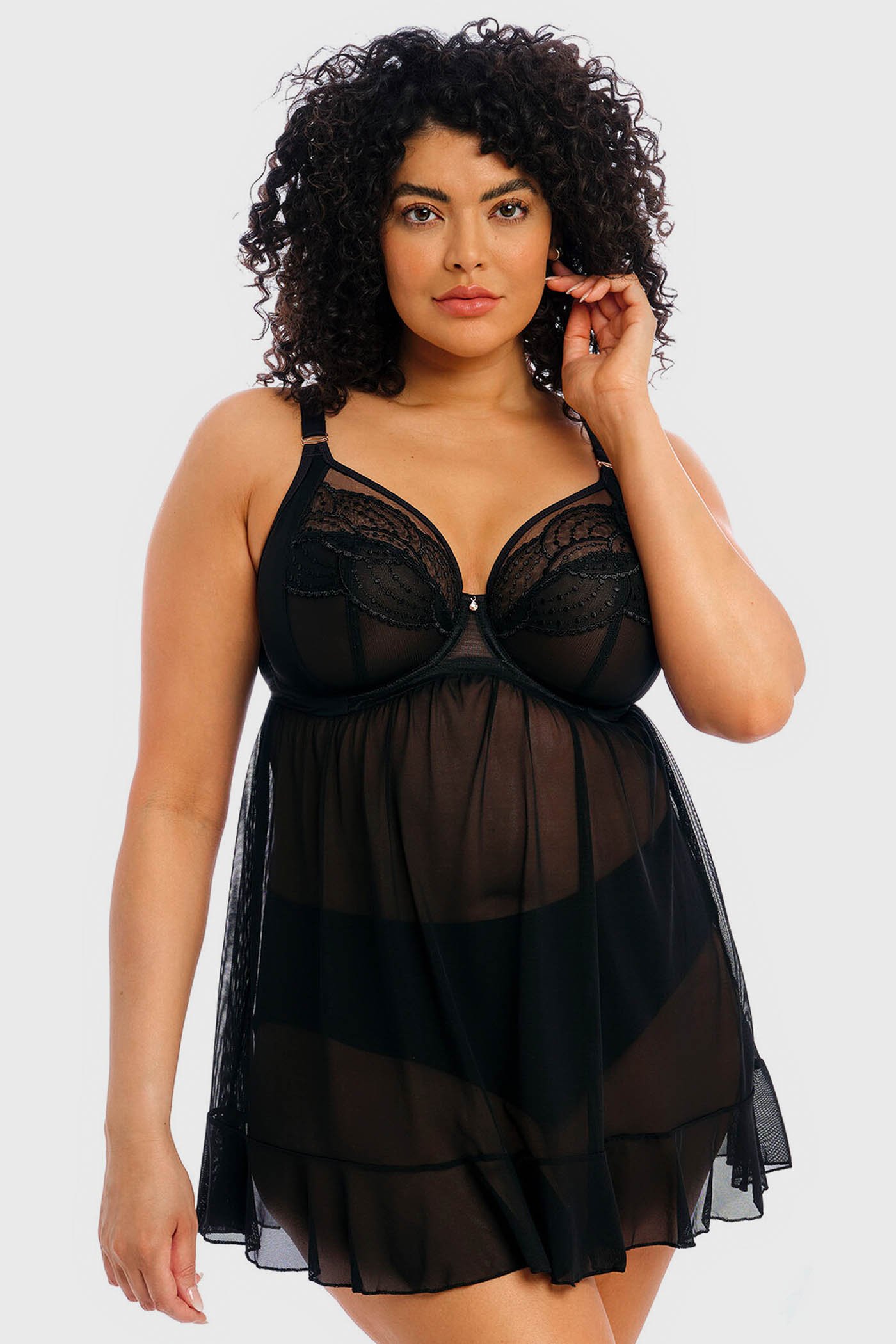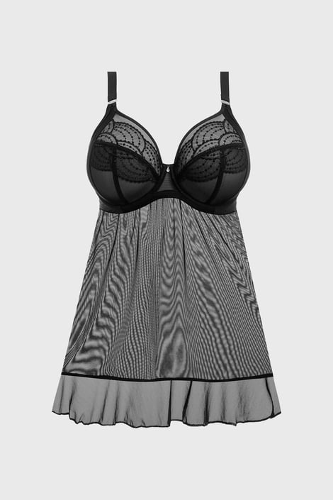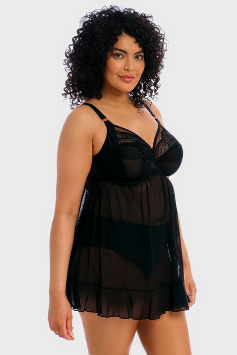 Noční košilka Elomi Priya svůdně poodhalí plné ženské křivky. Nevyztužené košíčky z pevné síťoviny prsa hezky podrží, podpůrný boční díl pomůže prsa přiblížit více k sobě. S hebkými ramínky.