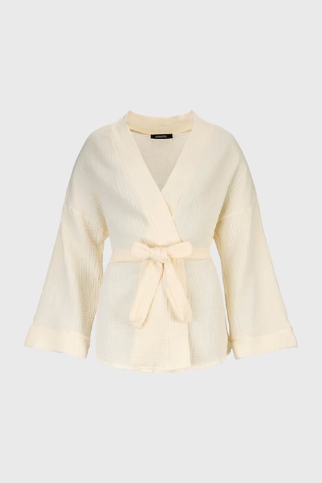 Plážová košile Calyra II kimonového střihu z měkounkého bavlněného mušelínu se stane vaším oblíbeným kouskem. Má široké rukávy, je bez zapínání, pouze se zavazováním v pase. Můžete ji nosit jako halenku, kabátek, přehoz přes plavky. Fantazii se meze nekladou. Navrženo specialisty Astratexu.