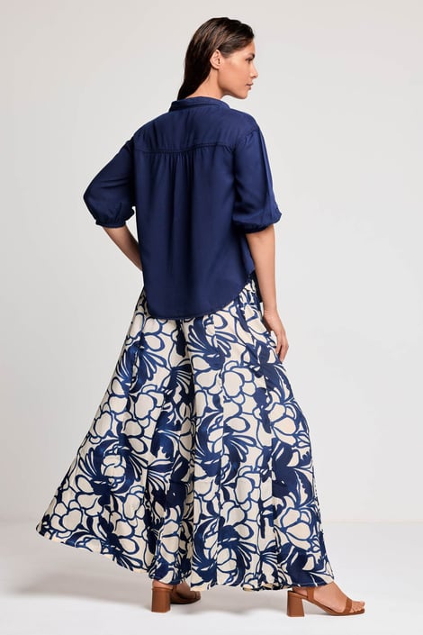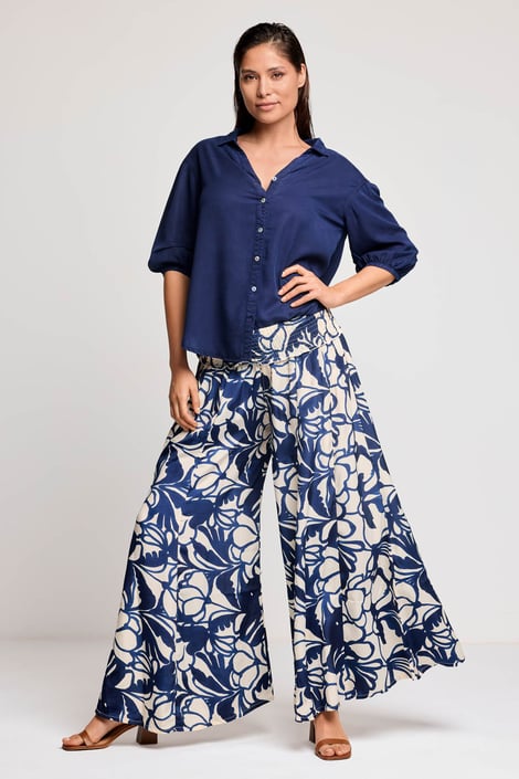 Plážové kalhoty David Beachwear Palazzo se širokými nohavicemi. Vzdušná tkanina se bude v létě příjemně nosit. Pas je široký a dokonale elastický. S výrazným grafickým vzorem.