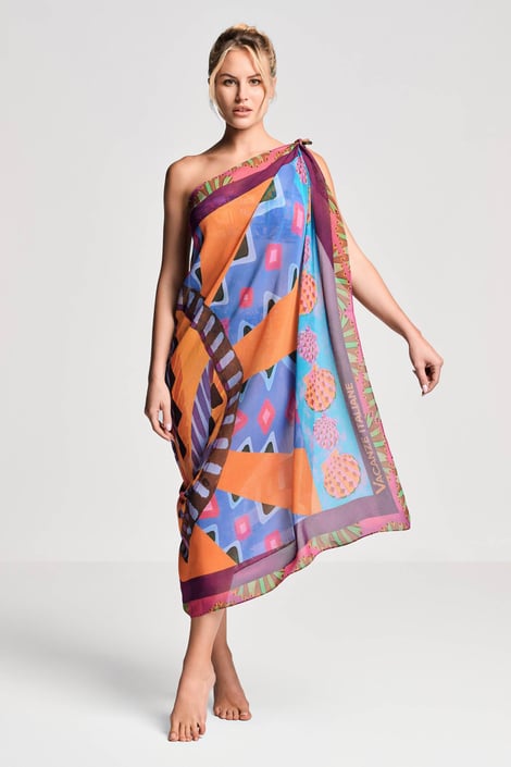 Plážové pareo Vacanze Florida z pavučinkově lehké a jemně průsvitné tkaniny využijete jako přehoz přes plavky, který uvážete na spoustu způsobů. S pestrobarevným potiskem.