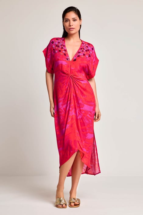Plážové šaty David Beachwear Kaira ze vzdušné viskózové tkaniny budou v létě příjemně chladit. Výstřih do V lemují drobné korálky a flitry, oblast pasu zdobí překřížení, dolní část je s rozparky. V bocích najdete praktické kapsy.