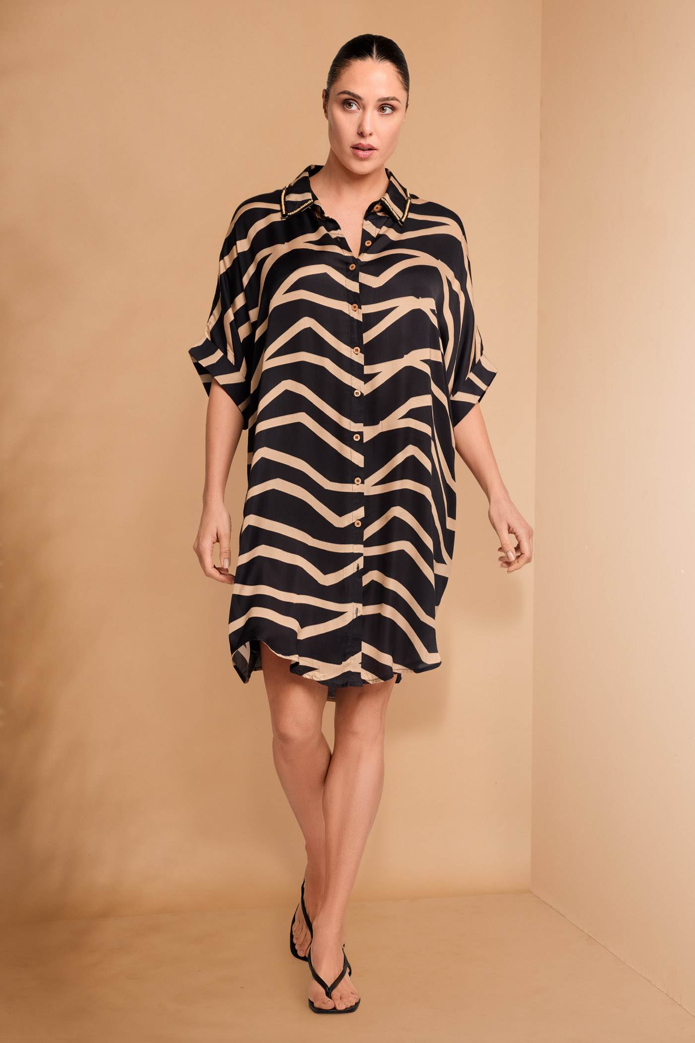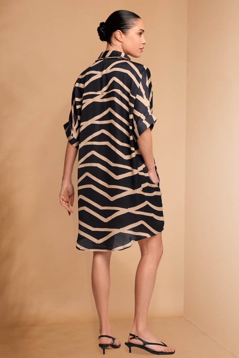 Plážové šaty David Hope ze splývavého viskózového saténu budou v létě příjemně chladit. Volný celopropínací střih na knoflíčky v délce ke kolenům je navíc nesmírně pohodlný. Elegantní límeček zdobí korálkové olemování. S praktickými kapsami v bocích.