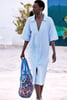 Plážové šaty Iconique Margot s elegantním límečkem a zajímavě řešeným výstřihem do V. Krátký rukáv, volný střih a tkanina z kombinace přírodních materiálů je tím pravým, co chcete v létě oblékat. V bocích najdete také praktické kapsy.