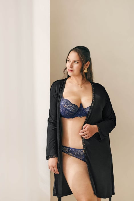Nevyztužená podprsenka Amar nabídne vašim prsům přirozenou oporu. T střih krajkových košíčků se postará o lehké tvarování, klasické kostice ňadra pozvednou. Podpůrné boční díly je pak nasměrují do neobvykle řešeného středu. Krajku doplňuje satén a jemný tyl.