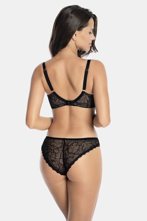 Dopřejte si elegantní kousek prádla v podání podprsenky Celine Gold. Nevyztužené košíčky z lehounké síťoviny jemně přilnou k prsům a vyzdvihnou jejich přirozený tvar. S bohatou květinovou výšivkou, která díky kontrastu černé a zlaté nitky nádherně vyniká na těle.