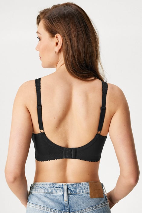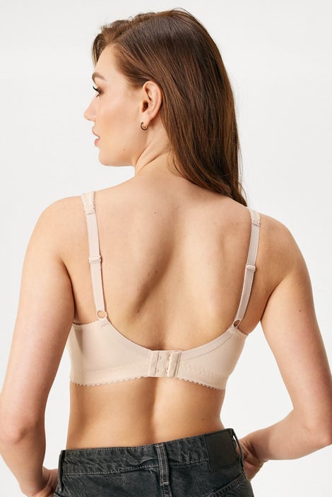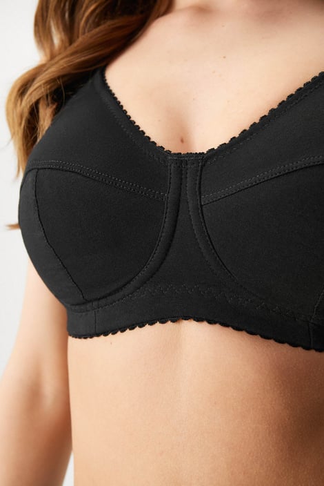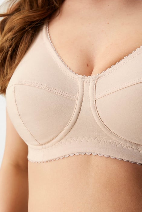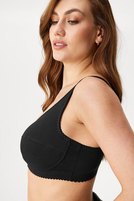 Bavlněná podprsenka Ellen v bezkosticovém provedení nabízí maximální komfort pro každodenní nošení. Košíčky z měkkého úpletu jsou opatřené vyztuženým bočním dílem, který posune prsa směrem k sobě, o podporu se postará širší guma v obvodu. Vysoký střed spolehlivě podrží na místě i větší vnady. Ramínka jsou v horní části měkce podložená, aby nikde netlačila. Navrženo specialisty Astratexu.