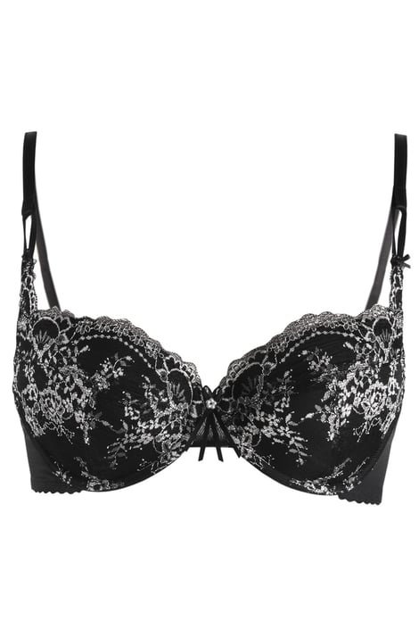 Vyztužená podprsenka Ester v elegantní černobílé kombinaci. Košíčky v zakulacujícím T střihu jsou potažené jemnou krajkou.