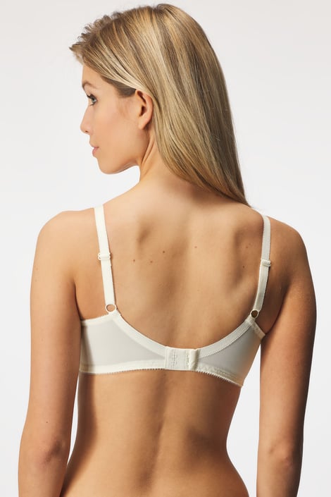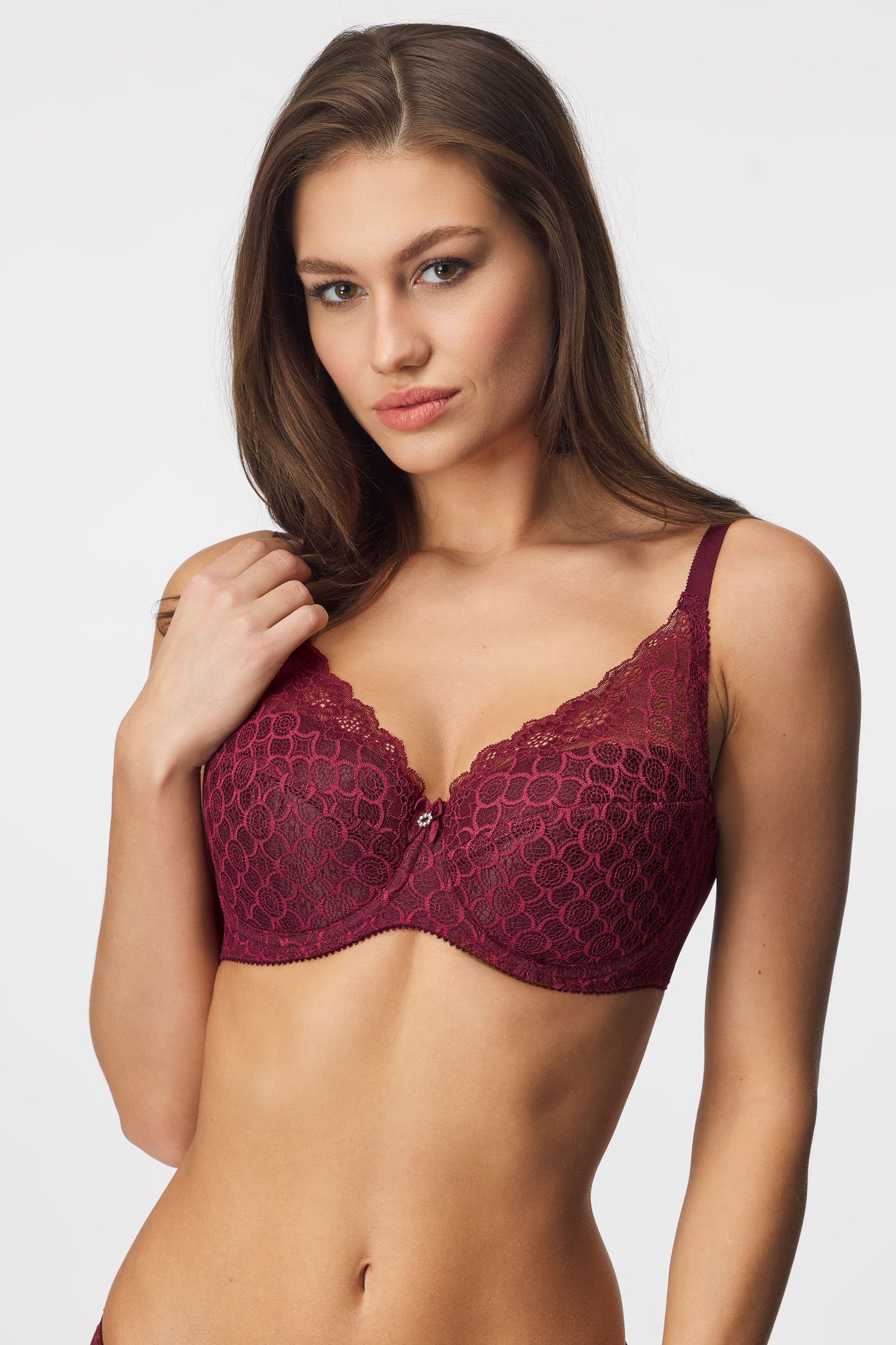 Vyztužená podprsenka Flirt s bohatou ornamentální krajkou. Košíčky jsou střižené do tvaru T, který propůjčí prsům náležitý kulatý tvar.