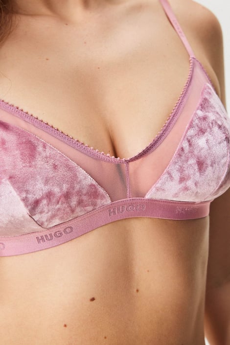 Podprsenka Triangle P. SL Design od prémiové značky HUGO je ušita z neotřelé kombinace materiálů. Vyztužené košíčky trojúhelníkového tvaru jsou ze sametu a lemuje je jemný tyl. Ten najdete i v zadní části. Obvod tvoří širší měkká guma s logy značky.