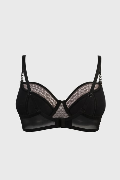 Střih polovyztužené podprsenky Illusion je ideální pro plné tvary. Vysoký střed a klasické kostice zajistí potřebnou oporu. Košíčky ve tvaru T prsa přirozeně zakulatí. Podprsenku zdobí nevšední kontrastní krajka.