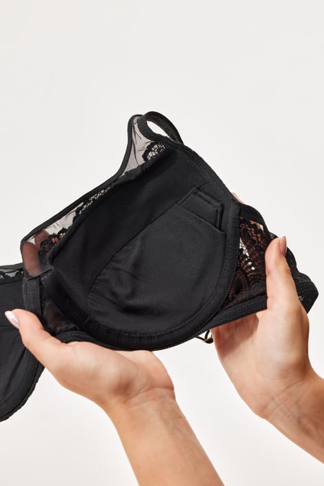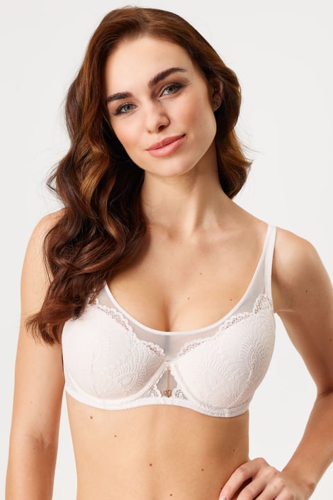 Podprsenka Imagin s vyjímatelnými vycpávkami zaujme krajkou košíčků i jemným tylem, který je spojuje. Bavlněná vnitřní strana je mimořádně pohodlná.