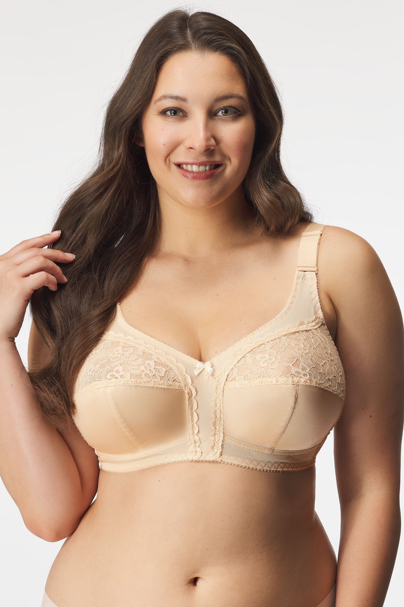 Nevyztužená podprsenka Joanna 577 je navržena speciálně pro velká prsa a obejde se zcela bez kostic. Vnitřní strana košíčků je pro větší komfort podšitá příjemnou bavlnou. Vyšší střed dokáže zpevnit i povislejší poprsí.