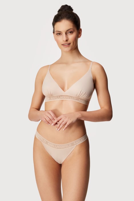 Braletka Karl Lagerfeld je na těle jako druhá kůže. Trojúhelníčkové košíčky jsou z hebkého mikrovlákna, jehož okraje jsou řezané laserem. Pod prsy jemná guma s logem výrobce.