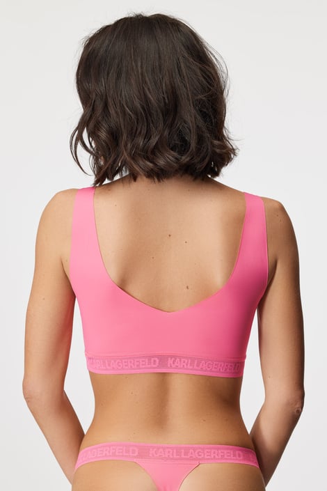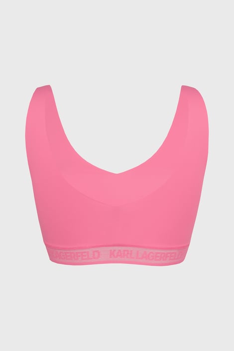Braletka Karl Lagerfeld Ultralight z lehoučkého mikrovlákna, jehož okraje jsou pro ještě větší komfort řezané laserem. Pod prsy vyniká jemná síťovina s logem ikonické značky.