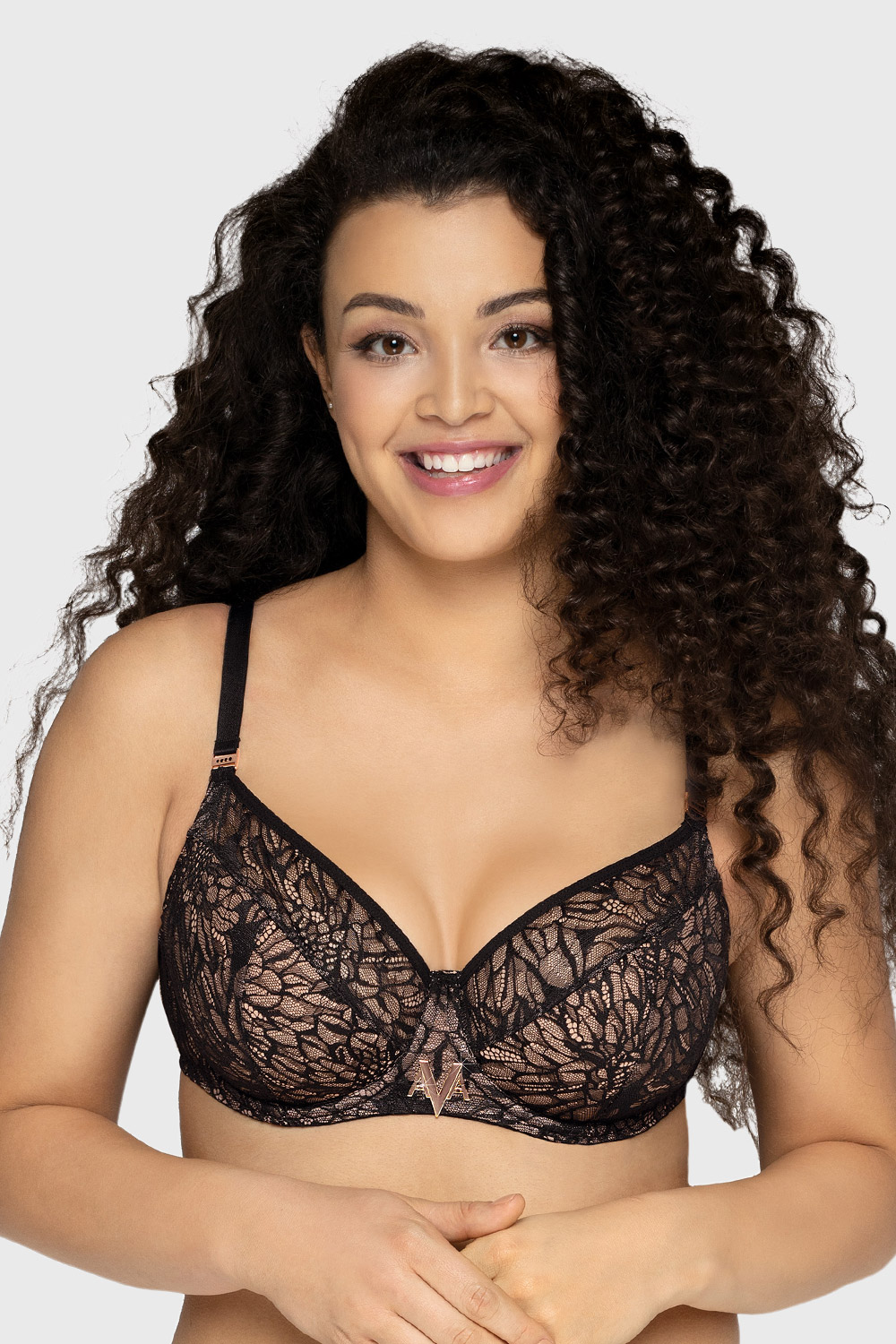 Polovyztužená podprsenka Lets Get Loud pro plnější ňadra. Měkce vyztužené košíčky jsou střižené do tvaru T, který díky svislému švu ňadra pěkně zakulatí. Vnitřní strana košíčků je z příjemné bavlny, vnější pokrývá jemná květinová krajka.