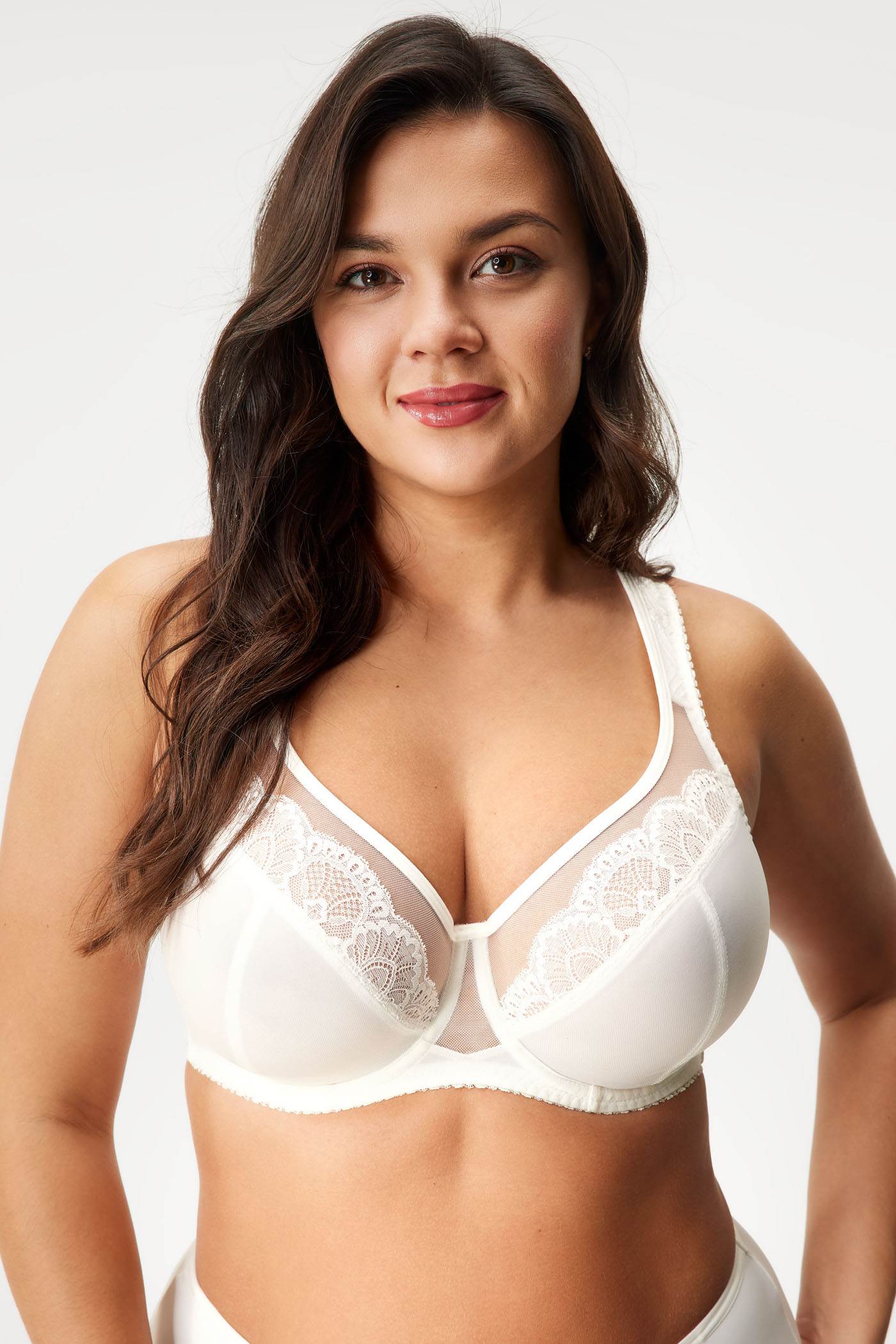 Nevyztužená podprsenka Luisse s košíčky v oblíbeném T střihu je vhodná pro velká prsa. Horní část košíčků zdobí jemný vyšívaný tyl. Komfortní polstrovaná ramínka se nezařezávají.