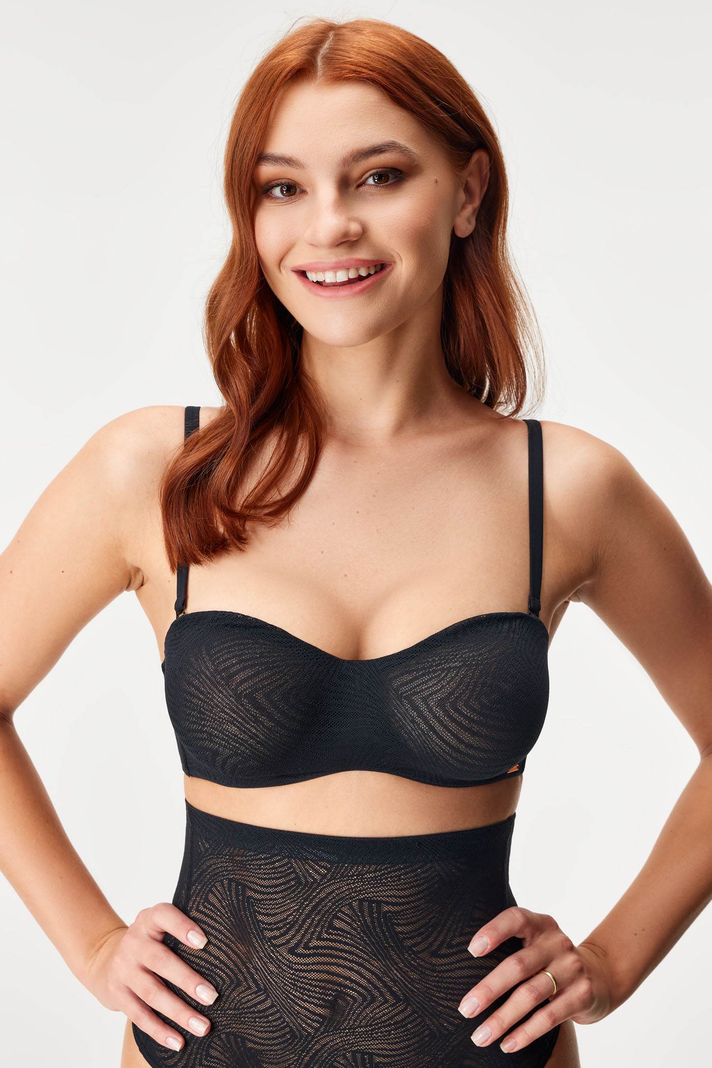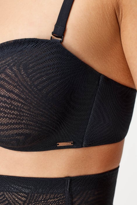 Nevyztužená bardotka Marble smyslně poodhalí vaše ňadra. Košíčky tvoří dvojitá síťovina s jemnou kresbou, která krásně vyniká na těle. Ramínka můžete odepnout, překřížit, zapnout za krkem a nebo je zcela odepnout a užít si outfit s odhalenými rameny.