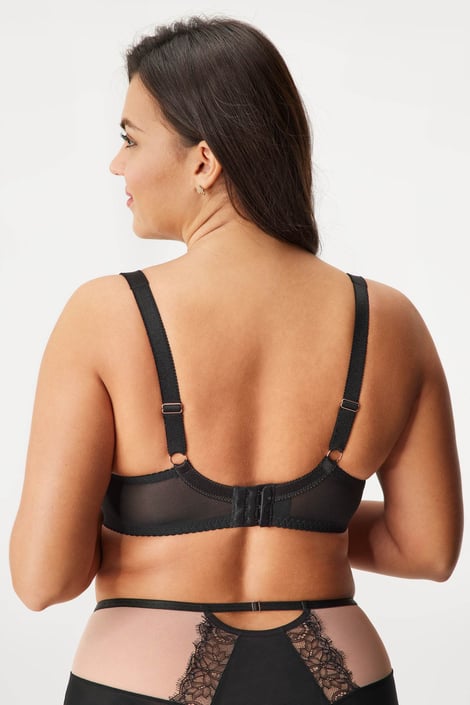Podprsenka Noelle Plus v elegantní kombinaci černé krajky a tělového tylu. Nevyztužené košíčky jsou výjimečně lehké na těle, snadno se přizpůsobí a dodají prsům přirozený tvar.