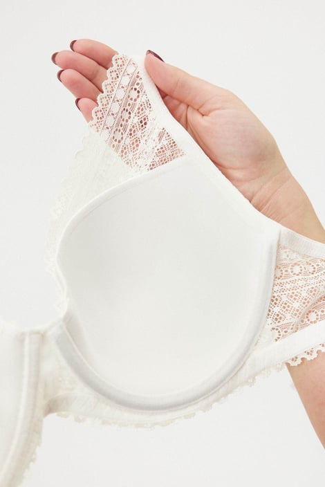 Vyztužená podprsenka Passion z jemné krajky, která volně přechází z košíčků na ramínka. Díky nižšímu středu je podprsenka vhodná i do hlubších výstřihů.