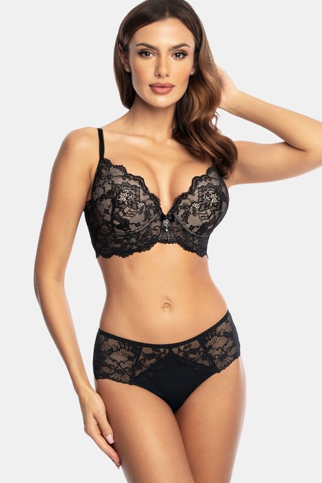 Podprsenka Piony Push-Up vykouzlí dokonalý dekolt. Vyztužené košíčky překrývá kontrastní květinová krajka, která zdobí i široký obvod podprsenky. Elegantní kousek prádla vhodný na romantické chvíli ve dvou.