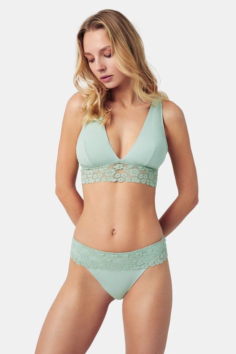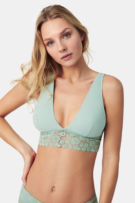 Dopřejte si špetku romantiky s braletkou Simon. Oplývá půvabnou mintovou barvou a lehoučkou květinovou krajkou. Nevyztužené košíčky přirozeně prsa tvarují, objem pomohou dodat vyjímatelné vycpávky. V provedení bez kostic.