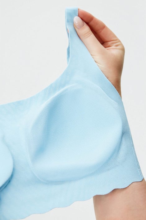 Podprsenka nemá zapínání ani nastavitelná ramínka, obléká se přes hlavu, takže nikde netlačí žádné sponky. Sedí krásně, košíčky mírně vyztužené. Ideální na domácí pohodlí.