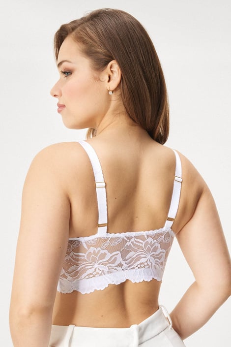 Nevyztužená podprsenka Veil zajistí komfort i velkému poprsí. Široký obvod zapnete vpředu na několik háčků, měkká guma hezky přilne k tělu. Ňadra uložíte do krajkových košíčků s podšívkou ze síťoviny, které je přirozeně vytvarují do kulata. Délkově nastavitelná ramínka jsou širší, aby ulevila zádům.