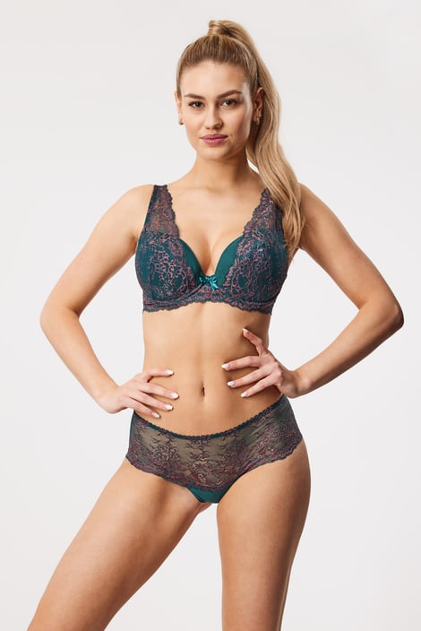 Vyztužená podprsenka Wood Flower má košíčky doplněné o vyjímatelné vycpávky, sama si tak můžete určit objem dekoltu. Hladké košíčky jsou překryté jemnou dvoubarevnou krajkou, která přechází na ramínka i obvod.