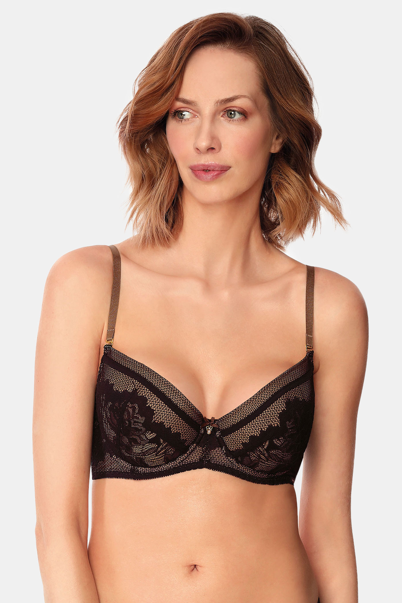 Krajková Push-Up podprsenka Zara s odepínacími ramínky je vhodná i pro větší prsa. Push-Up košíčky s kosticemi krásně vymodelují dekolt, díky vyjímatelným vycpávkám si můžete sama regulovat jeho objem.