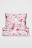 Bavlněné povlečení Lucia bude ozdobou vaší ložnice. Jemně vzorovaný bílo-růžový podklad zdobí vínové, růžové a fialové květiny a lístky.