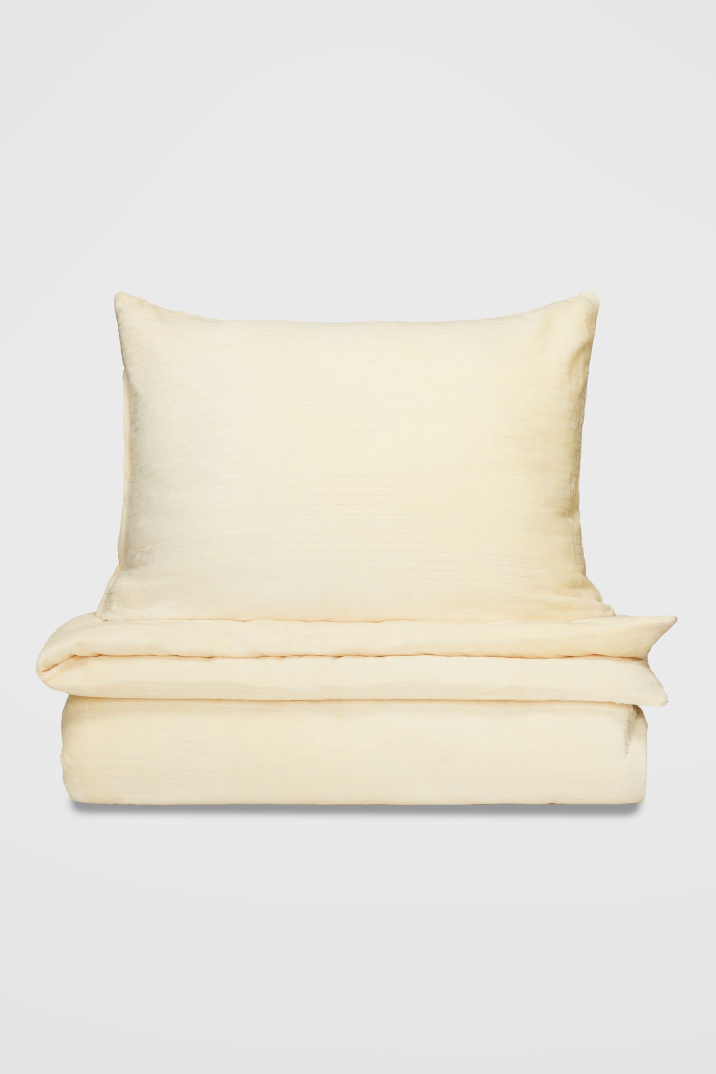 Povlečení ze sametově hebkého mikroflanelu s decentním pruhovaným vzorem. S praktickým zapínáním na zip.