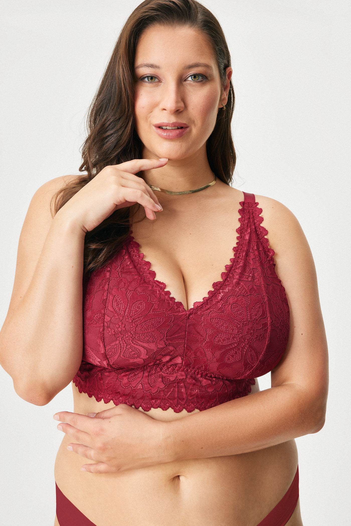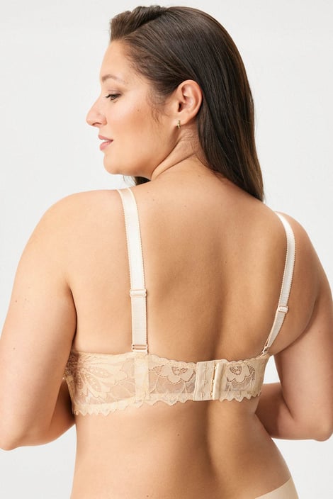 Protetická podprsenka July je v přední části ušita z krajky, kterou doplňuje bavlněná podšívka. Trojúhelníkové košíčky jsou nevyztužené, jsou však opatřeny kapsou pro vložení protetické náhrady. Bezkosticové provedení zaručuje maximální pohodlí. Z dílny Astratexu.