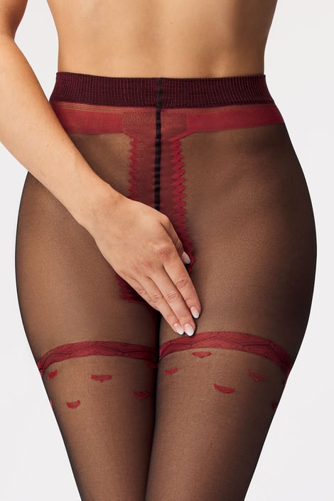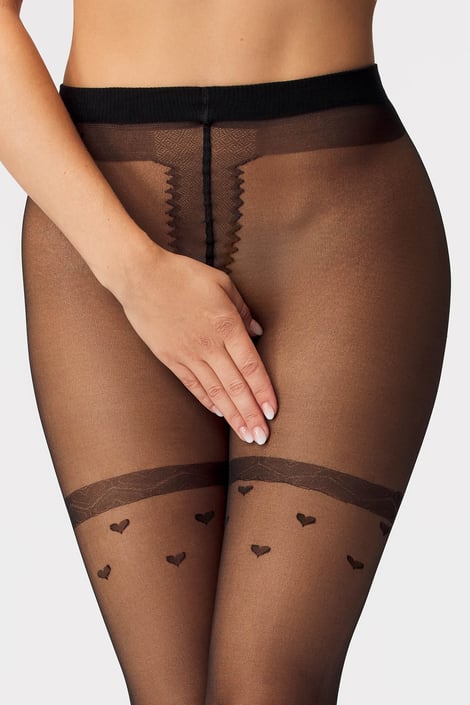 Erotické punčochové kalhoty Hearts s otevřeným klínem i zadní částí. Na stehnech jemný srdíčkový vzor a imitace punčochového lemu.