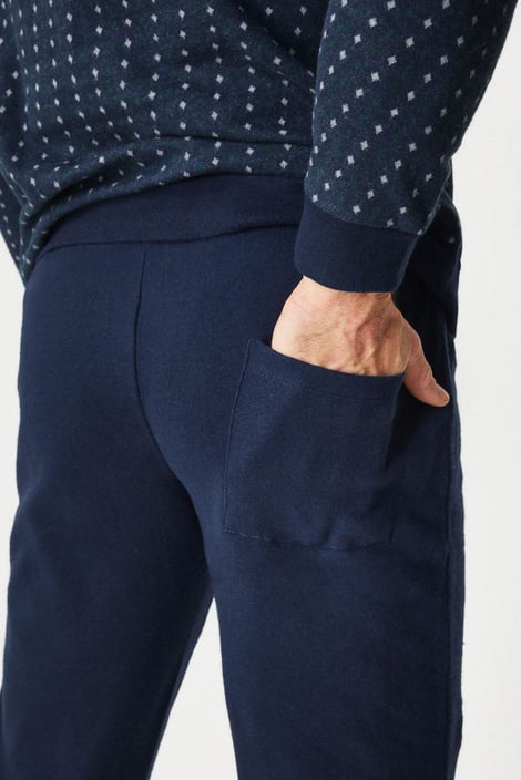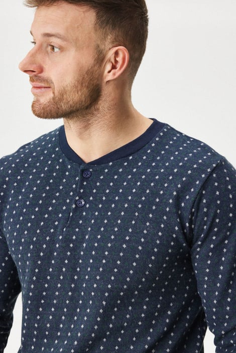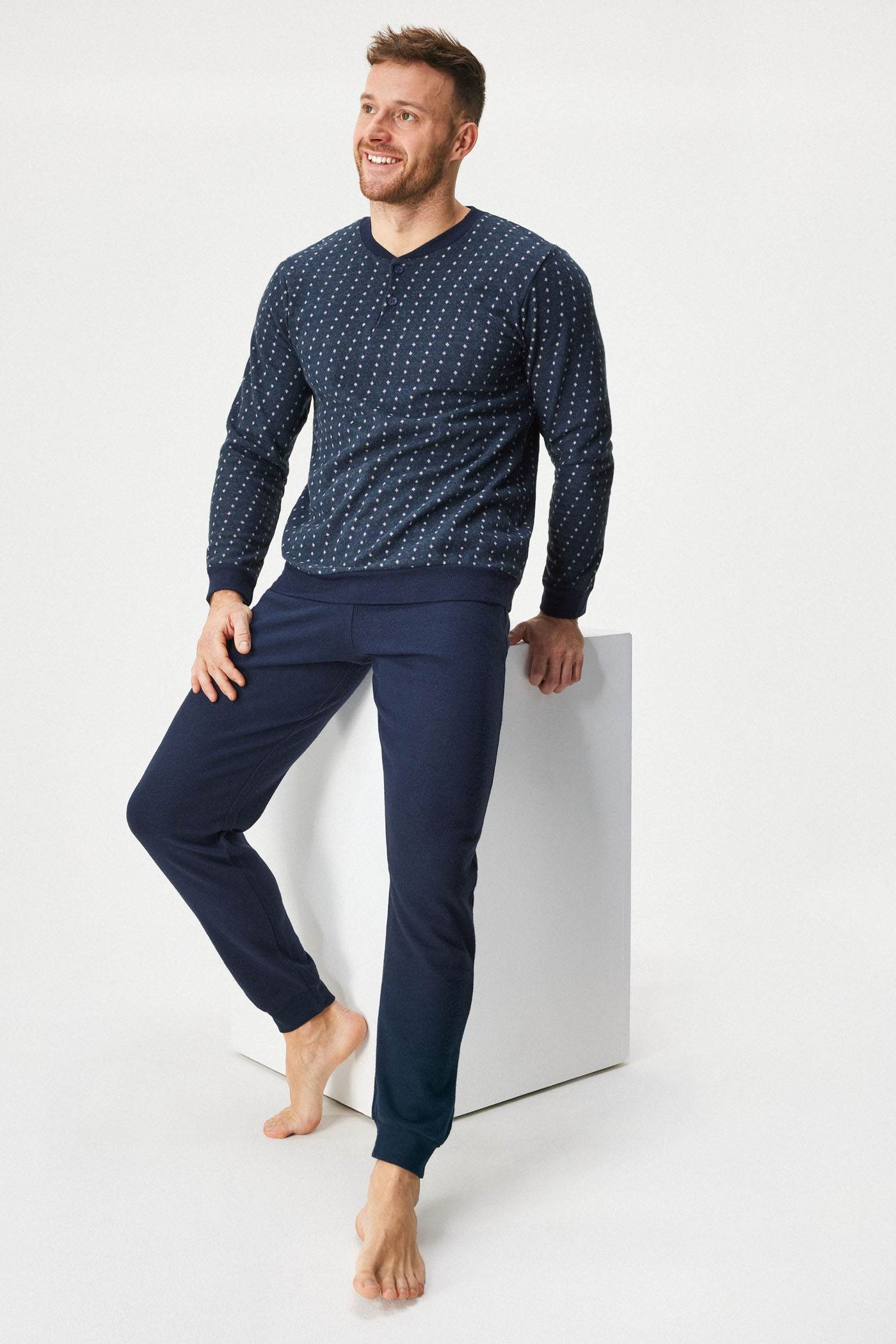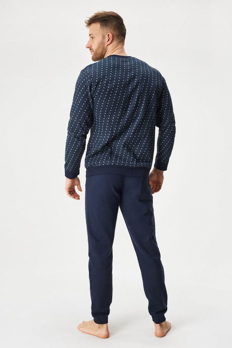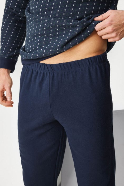 Elegantní pyžamo Aries je ušito z hřejivého fleecu, ve kterém se bude pohodlně spát. Triko s dlouhými rukávy zdobí drobný potisk a výstřih na knoflíčky. Dlouhé kalhoty jsou jednobarevné, s gumou v pase. Rukávy i nohavice zakončují manžety.