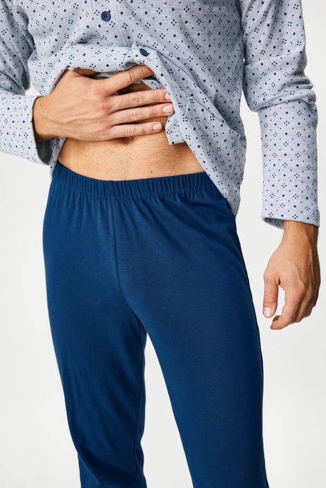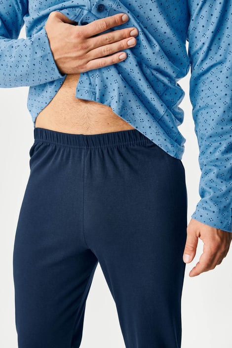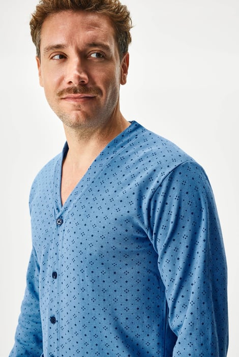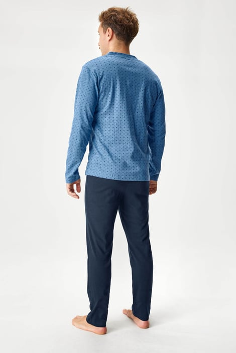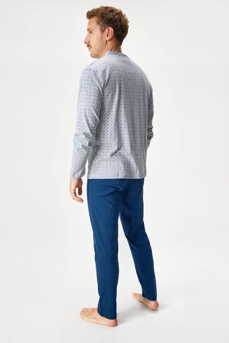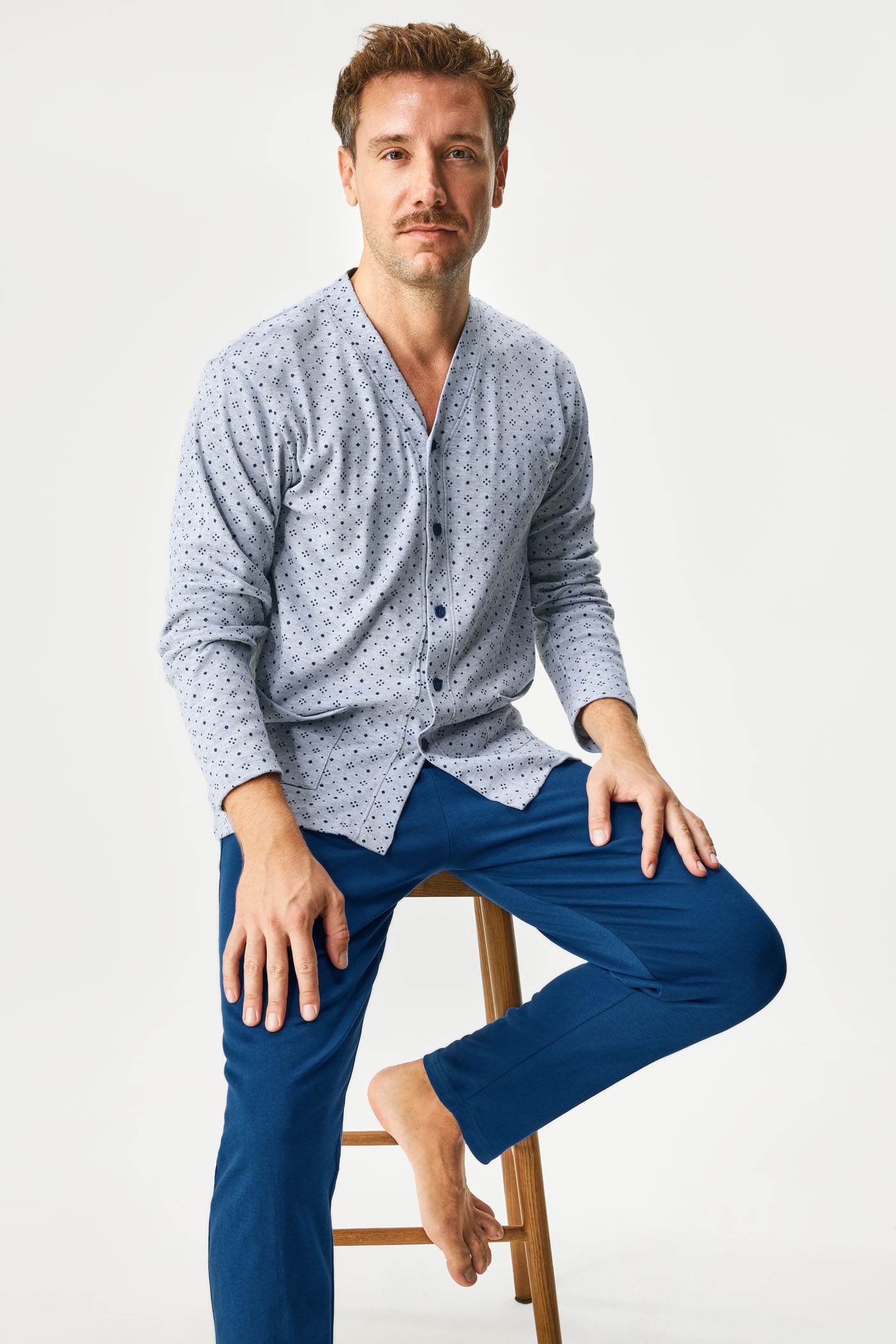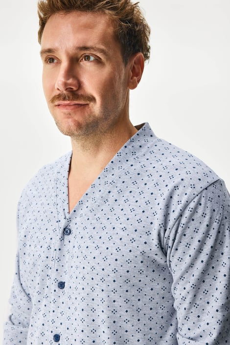 Elegantní pánské pyžamo Colby vám zaručí komfortní spánek. Kabátek s drobným potiskem je celopropínací, dlouhé kalhoty jednobarevné a v pase do gumy.