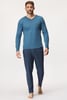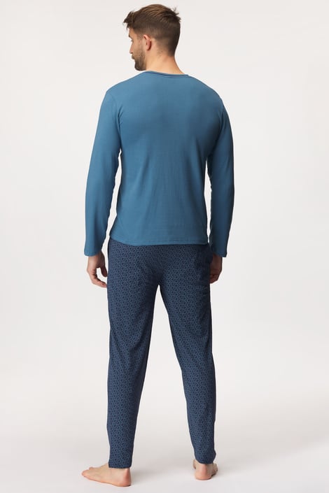Bavlněné pyžamo Deep blues pro mužské noční pohodlí. Jednobarevné tričko s kapsičkou na hrudi doplňují dlouhé kalhoty s geometrickým vzorem.