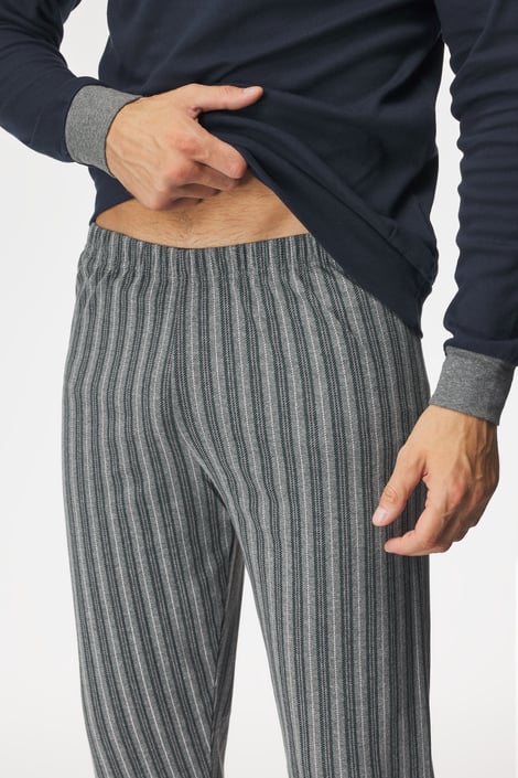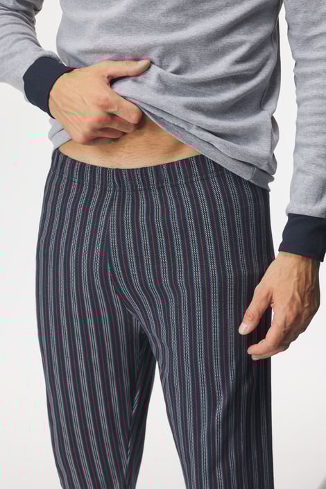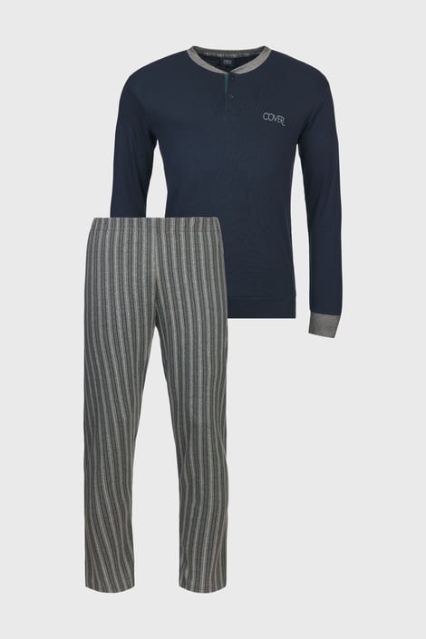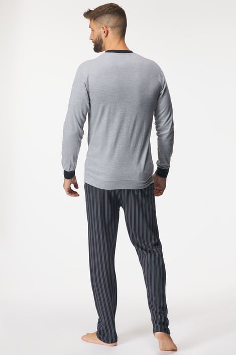 Pánské pyžamo Ernesto z příjemného bavlněného úpletu. Tričko má u krku zapínání na knoflíky a na hrudi logo výrobce. Pruhované kalhoty jsou opatřeny na zadní straně kapsou.