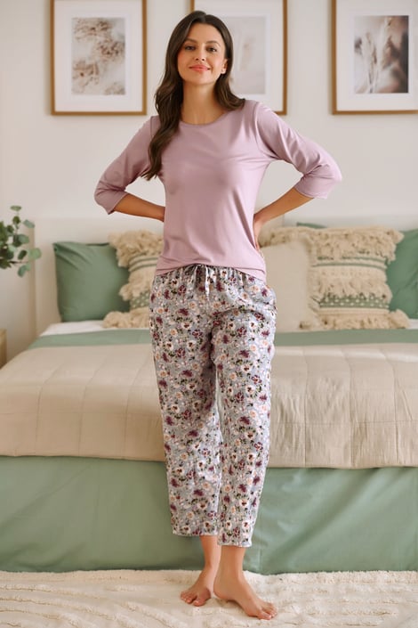 Pyžamo Flowers si zamilujete díky nesmírně příjemnému materiálu. Je ušité z hladké viskózy, která hezky splývá po těle. Dopřejte si pohodlný spánek.