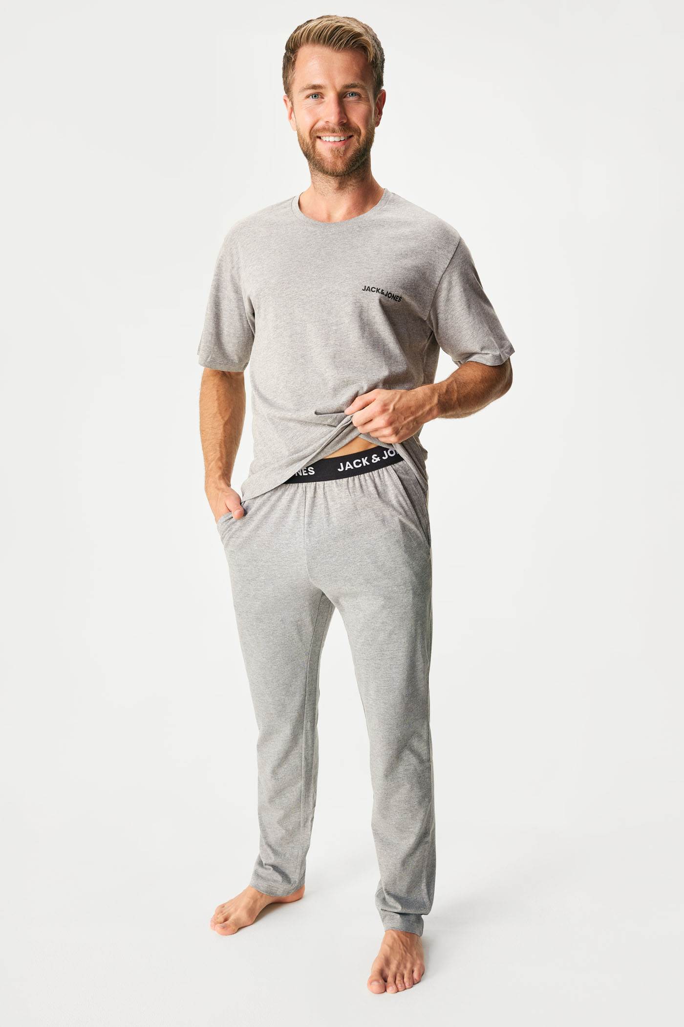 Pánské pyžamo JACK AND JONES JACEverest z příjemného úpletu. Dlouhé kalhoty jsou v pase do gumy s logy značky, tričko zdobí drobné logo vpředu.