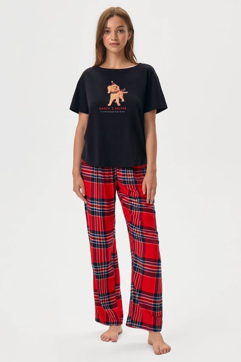 Dámské pyžamo Jolina ze 100% bavlny je jako stvořené pro ničím nerušenou vánoční pohodu. Tričko s decentním potiskem doplňují dlouhé kalhoty v oblíbeném kostkovaném vzoru.