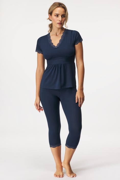 Dámské pyžamo Lotte vás oblékne do měkounké viskózy. Tričko s krátkým rukávem zdobí jemná kraječka, která lemuje i konce nohavic.