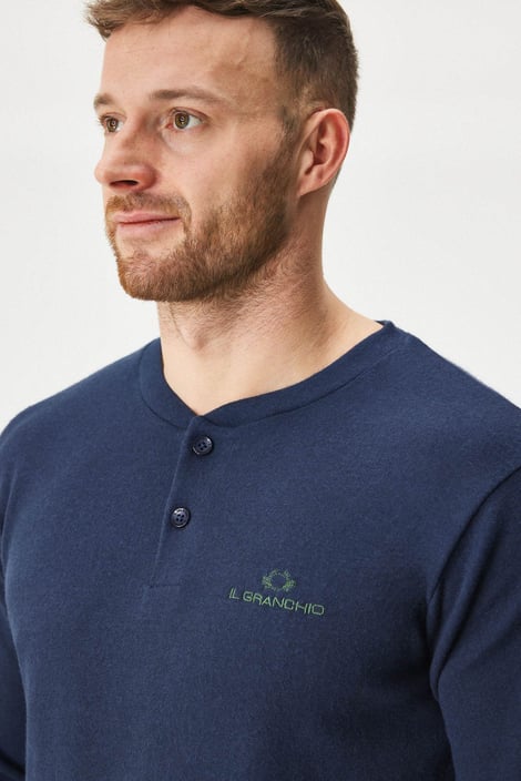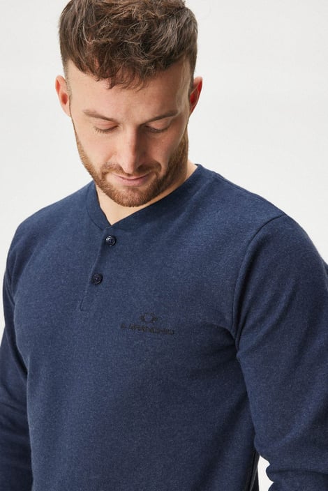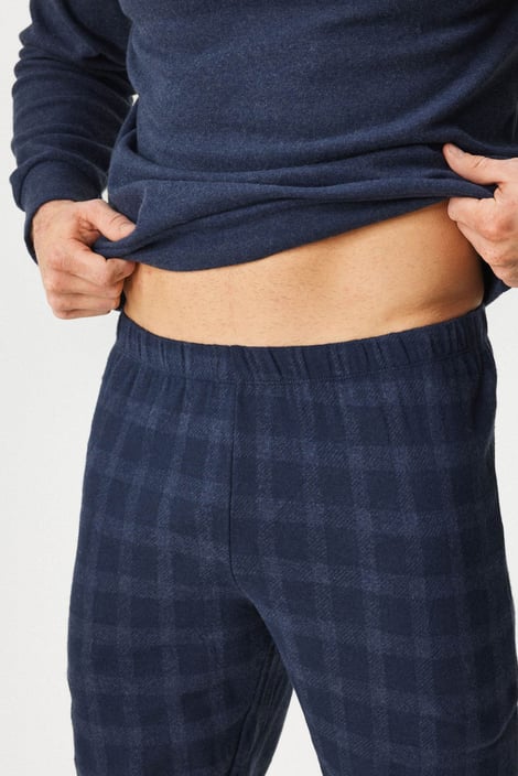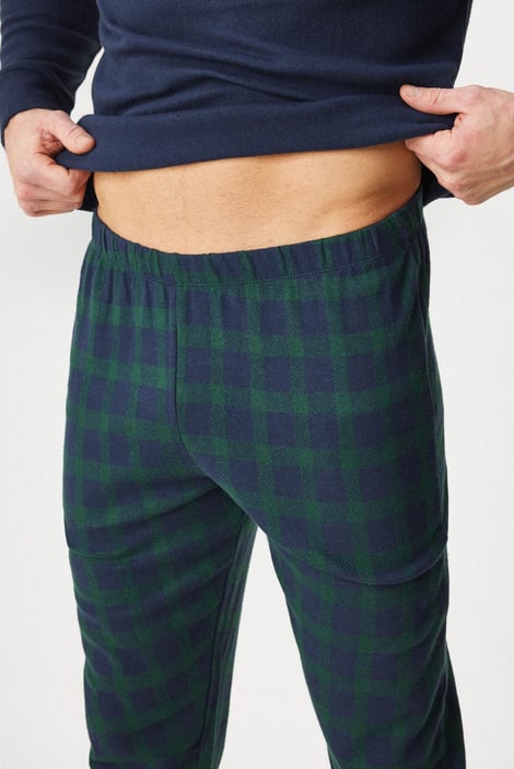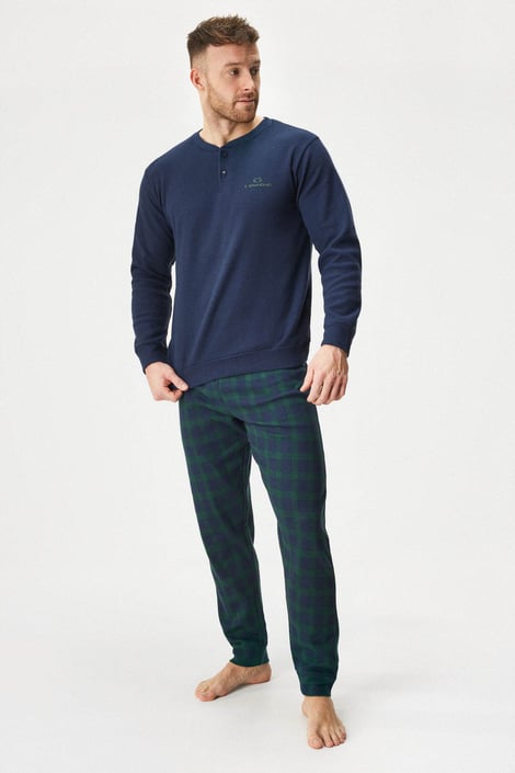 Pyžamo Preston je ušito z měkounkého fleecu, ve kterém se bude pohodlně spát. Jednobarevné triko s dlouhými rukávy zdobí drobný potisk loga a výstřih na knoflíčky. Dlouhé kalhoty jsou kostkované, s gumou v pase. Rukávy i nohavice zakončují manžety.