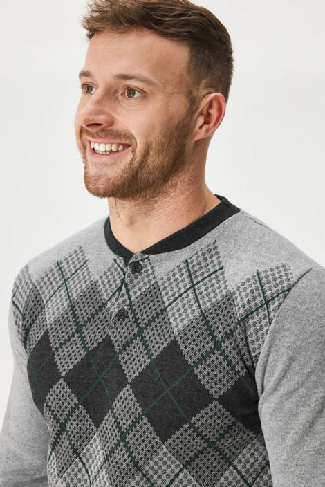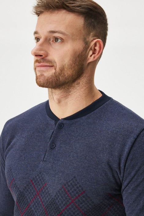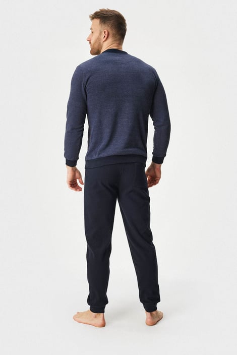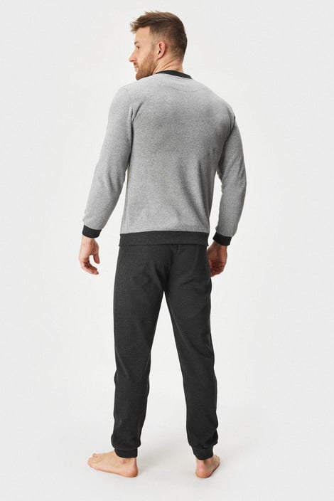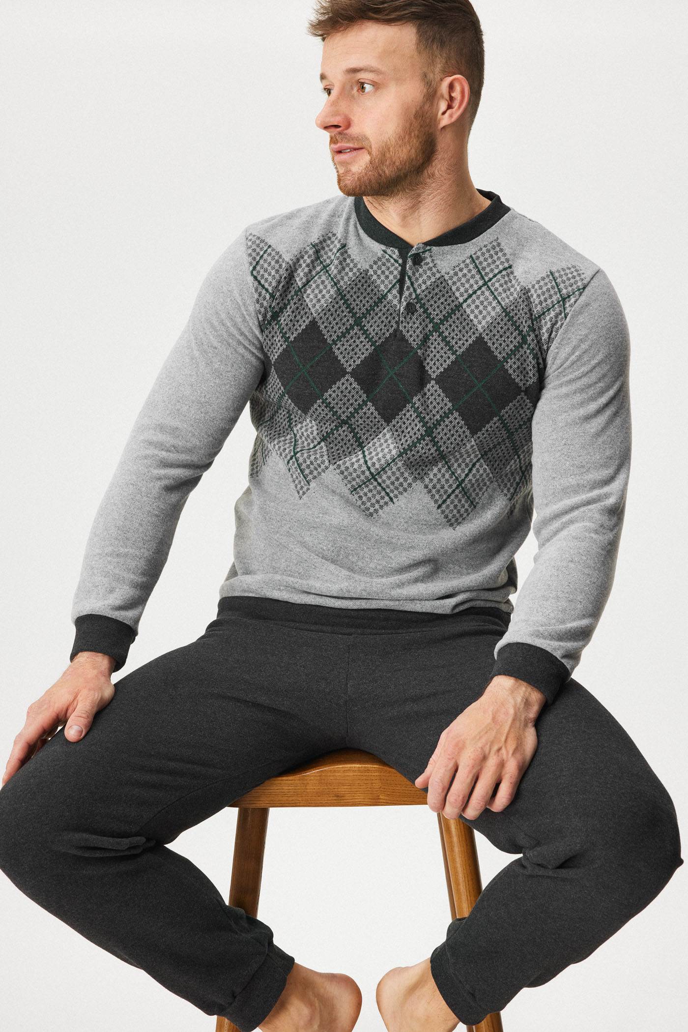 Pyžamo Roy je ušito z hřejivého fleecu, ve kterém se bude pohodlně spát. Triko s dlouhými rukávy zdobí potisk a výstřih na knoflíčky. Dlouhé kalhoty jsou jednobarevné, s gumou v pase. Rukávy i nohavice zakončují manžety.