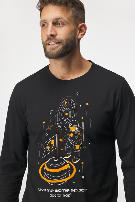 Pohodlné pánské pyžamo Space s potiskem na tričku a károvanými kalhotami. Měkký úplet ze 100% bavlny se postará o váš celonoční komfort.