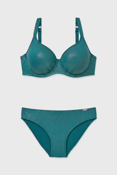 Rychleschnoucí dvoudílné plavky Nia Smaragd jsou synonymem komfortu pro vaše bujné křivky. Podprsenka disponuje prostornými Spacer košíčky s kosticemi, které jsou prodyšné a poskytnou prsům spolehlivou oporu. Kalhotky v klasické variantě střihu sluší každé postavě. V neotřelé petrolejové barvě se stříbrnými odlesky. Z dílny specialistů Astratexu.