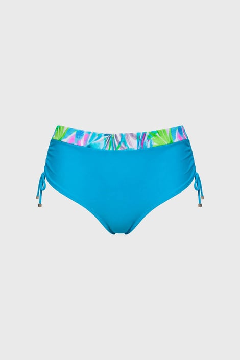 Spodní díl plavek Blue Mosaic kombinuje jednobarevnou hladkou část s pestrobarevným pruhem z plavkového piké. Zvýšený pas diskrétně schová bříško, boky jsou nastavitelné pomocí stahovacích šňůrek. Klasický střih potěší i dámy plných křivek. Speciální materiál s UV ochranou je navíc odolný proti žmolkování, chlóru a opalovacím prostředkům.